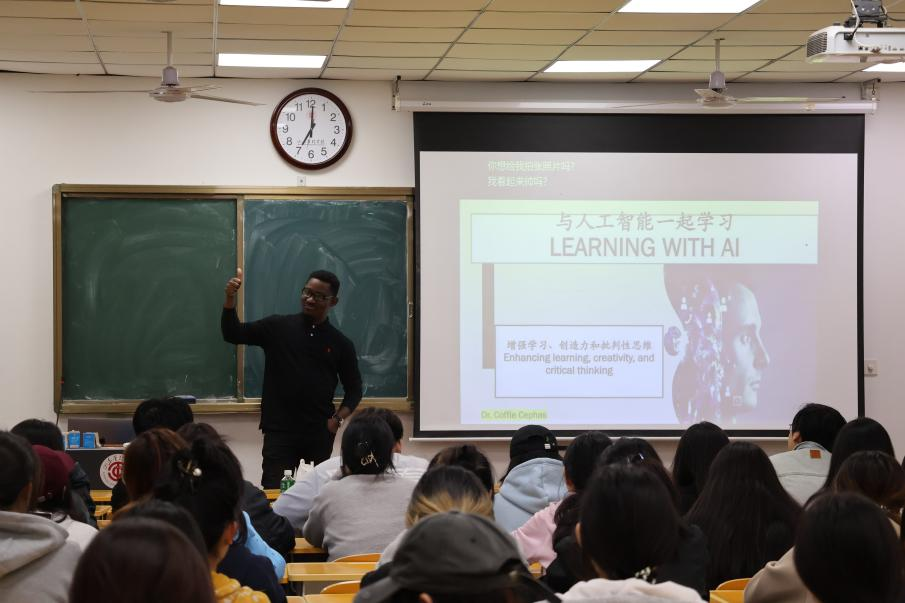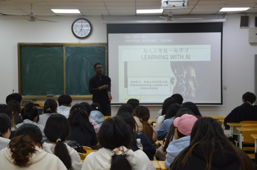 为引导学生科学合理运用人工智能技术赋能学业发展,国际交流学院外教Cephas在10月9日、16日分别为大二全体学生开展AI辅助学习方法专题培训,帮助学生掌握正确使用AI工具提升学习效率的实用技能。
