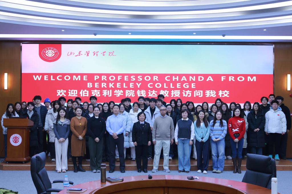 为深化我校与国际高校间的学术交流与合作,进一步提升学生国际视野,助力学校国际化办学水平提质增效,2026年1月4日,我校特邀美国伯克利学院(Berkeley College)金融学Dulal Chanda教授,以“21世纪全球商科教育”为主题举办专题讲座。我校“管仲班”学生及国际交流学院师生代表到场聆听。